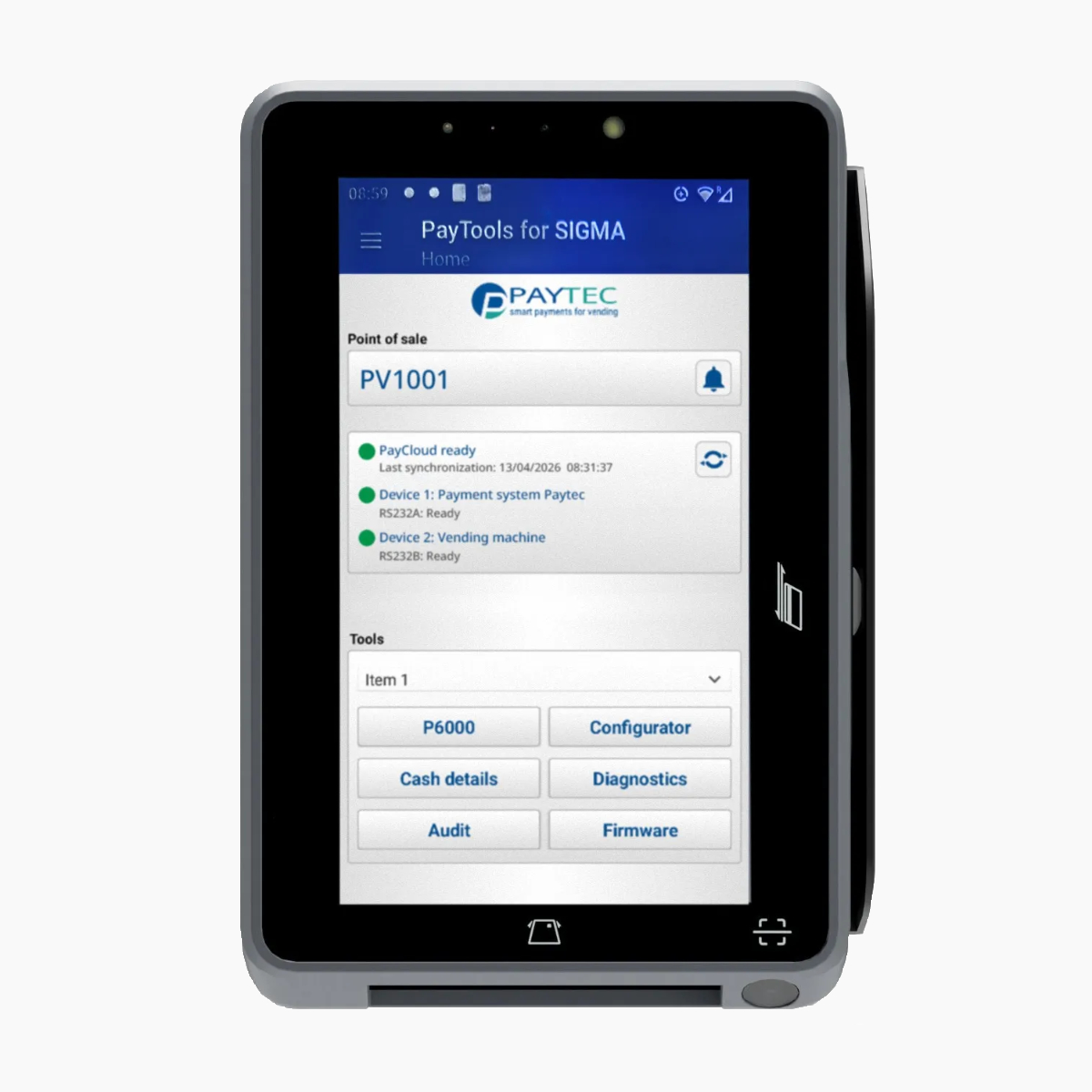 Grazie all’app PayTools for Sigma, il terminale diventa anche uno strumento di controllo remoto: tutto quello che serve per monitorare e gestire la macchina e i sistemi di pagamento è già dentro Sigma, senza moduli aggiuntivi e senza occupare altro spazio nell’installazione. I dati sono sempre disponibili su PayCloud, il portale Paytec per consultare, archiviare e modificare in modo sicuro tutte le informazioni relative ai tuoi sistemi.